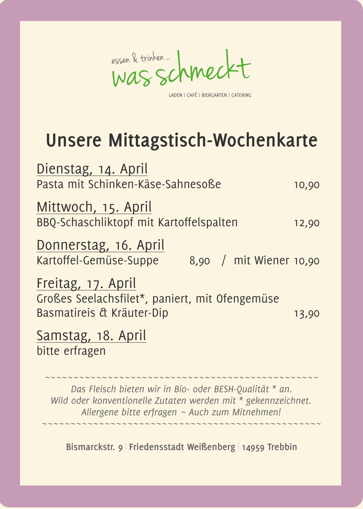 Nachfolgend unsere Mittagstisch-Wochenkarte